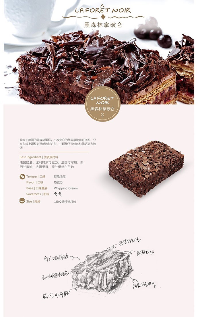 MCAKE 黑森林拿破仑巧克力口味生日蛋糕