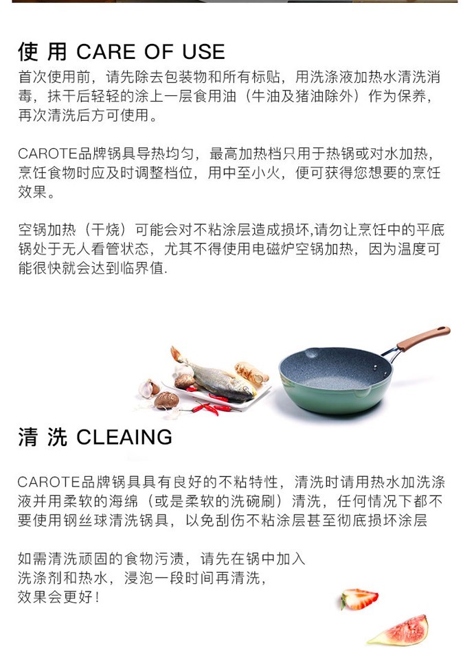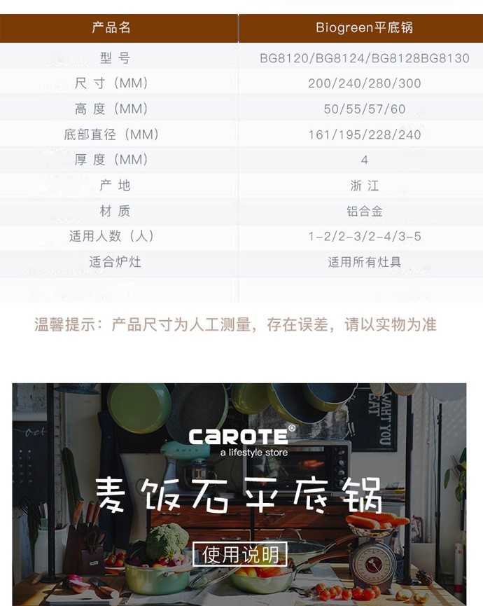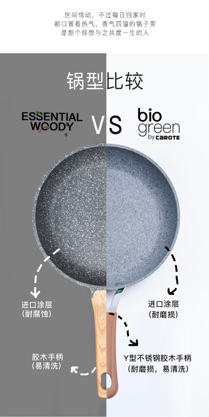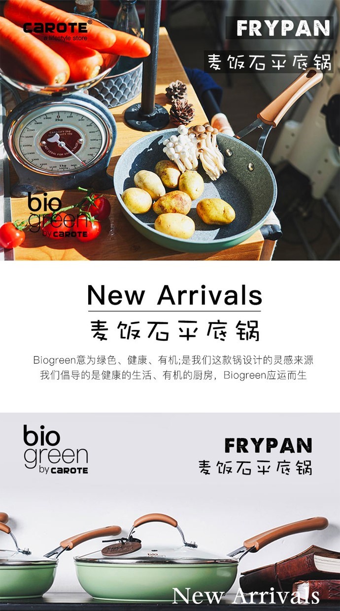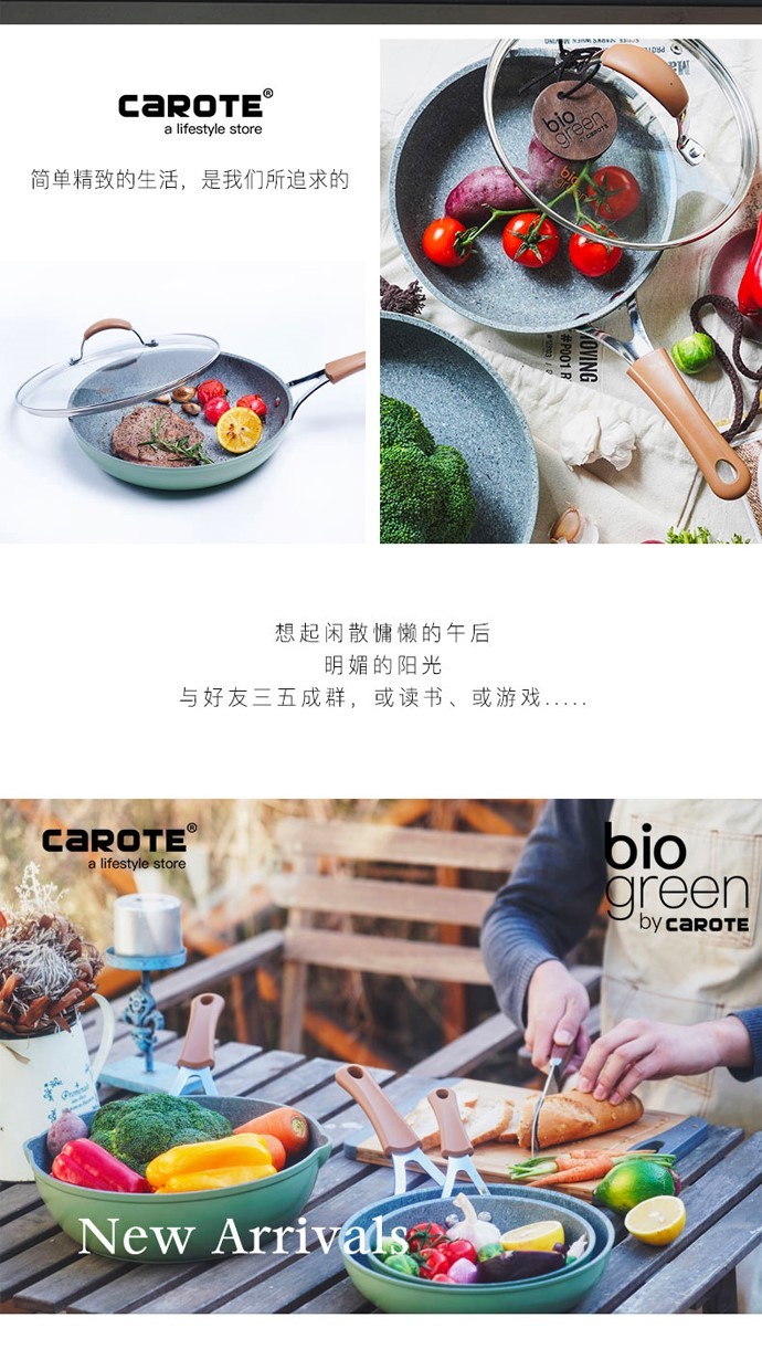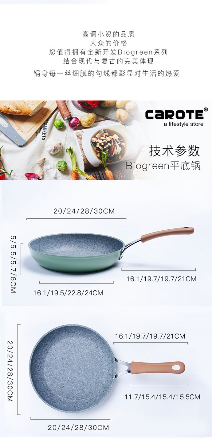 Carote 卡罗特 麦饭石平底锅煎锅不粘锅牛排煎锅煎蛋锅电磁炉燃气通用20cm平底锅
