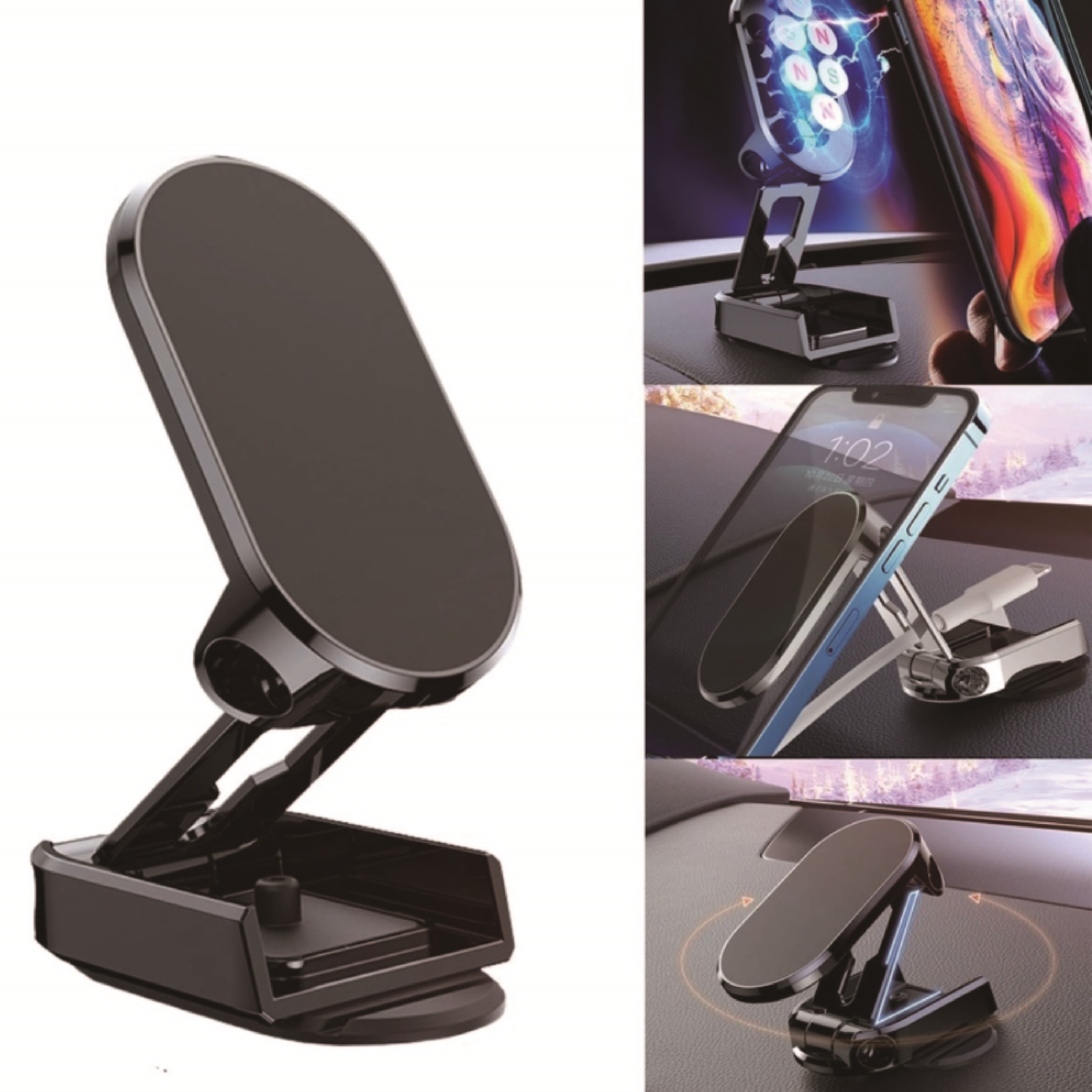 360° Rotating Folding Magnetic Car Phone Holder / Multifunction Dashboard Self-adhesive Mounted Phone Holder / In Car Phone Bracket